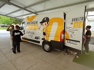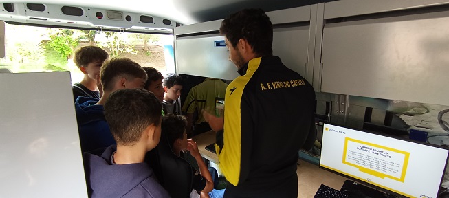 Na manhã do dia 13 de maio de 2025, a EBS de Caminha teve o privilégio de receber a “Carrinha da Arbitragem”, pertencente à Associação Portuguesa de Árbitros de Futebol (APAF). Da parte da tarde, foram os alunos da EBS do Vale do Âncora que tiveram a oportunidade de participar nesta atividade, que teve como objetivo dar a conhecer aos alunos o papel fundamental do árbitro no desporto, especialmente no futebol.