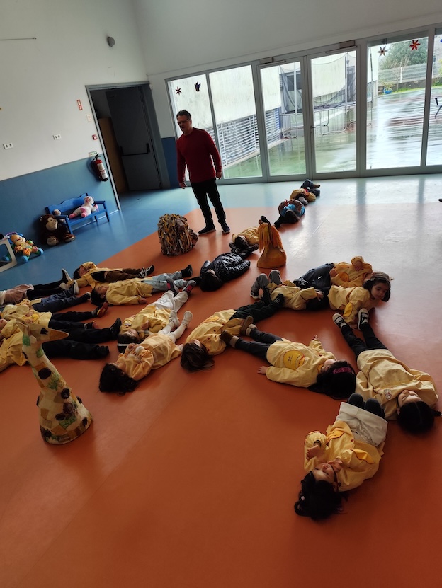 Com as crianças do JI de Vila Praia de Âncora — da sala 1, da educadora Manuela Fão — iniciou-se esta semana final de janeiro de 2026, o workshop de expressão dramática musicada FUNGAGÁ DA BICHARADA DA SELVA, orientado pelo professor Filipe Passos, técnico especializado do agrupamento no âmbito do Plano de Desenvolvimento Pessoal, Social e Comunitário do Programa Nacional de Promoção do Sucesso Escolar, em articulação com as Bibliotecas Escolares e os departamentos curriculares.